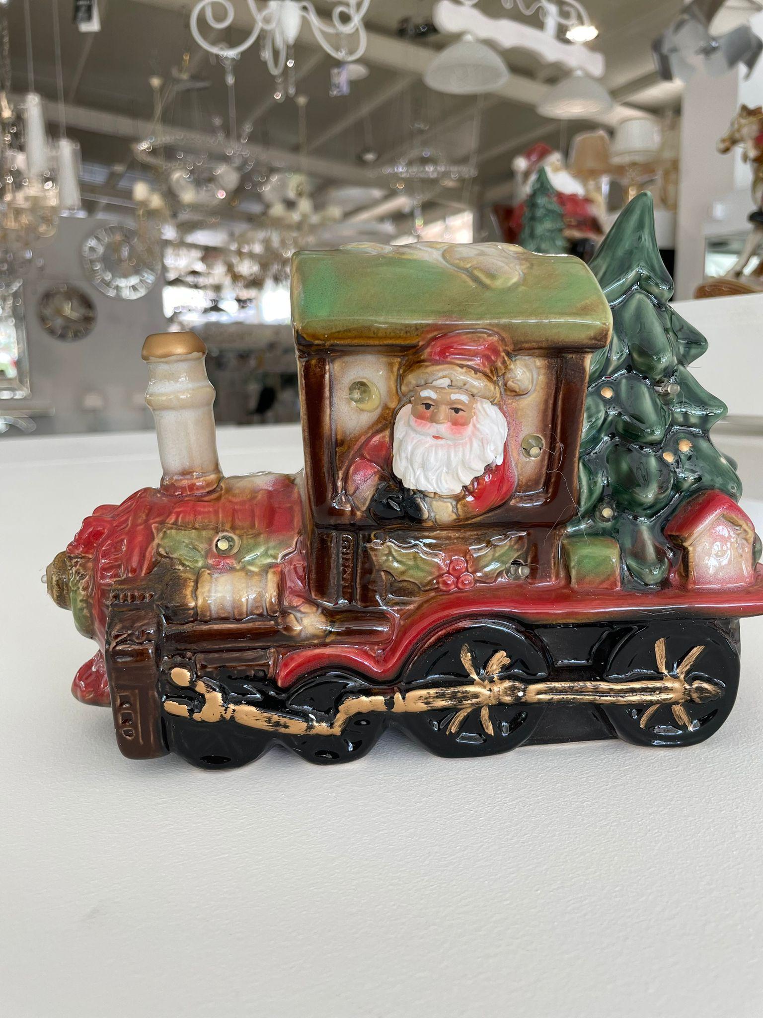 BABBO NATALE SUL TRENINO IN CERAMICA CON LED ROYAL FAMILY