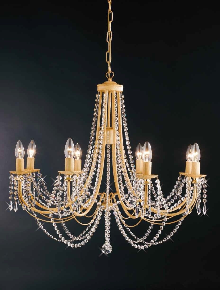 BLAKE LAMPADARIO SOSPENSIONE METALLO AVORIO ORO DECAPE' CON CRISTALL 8+1 LUCE