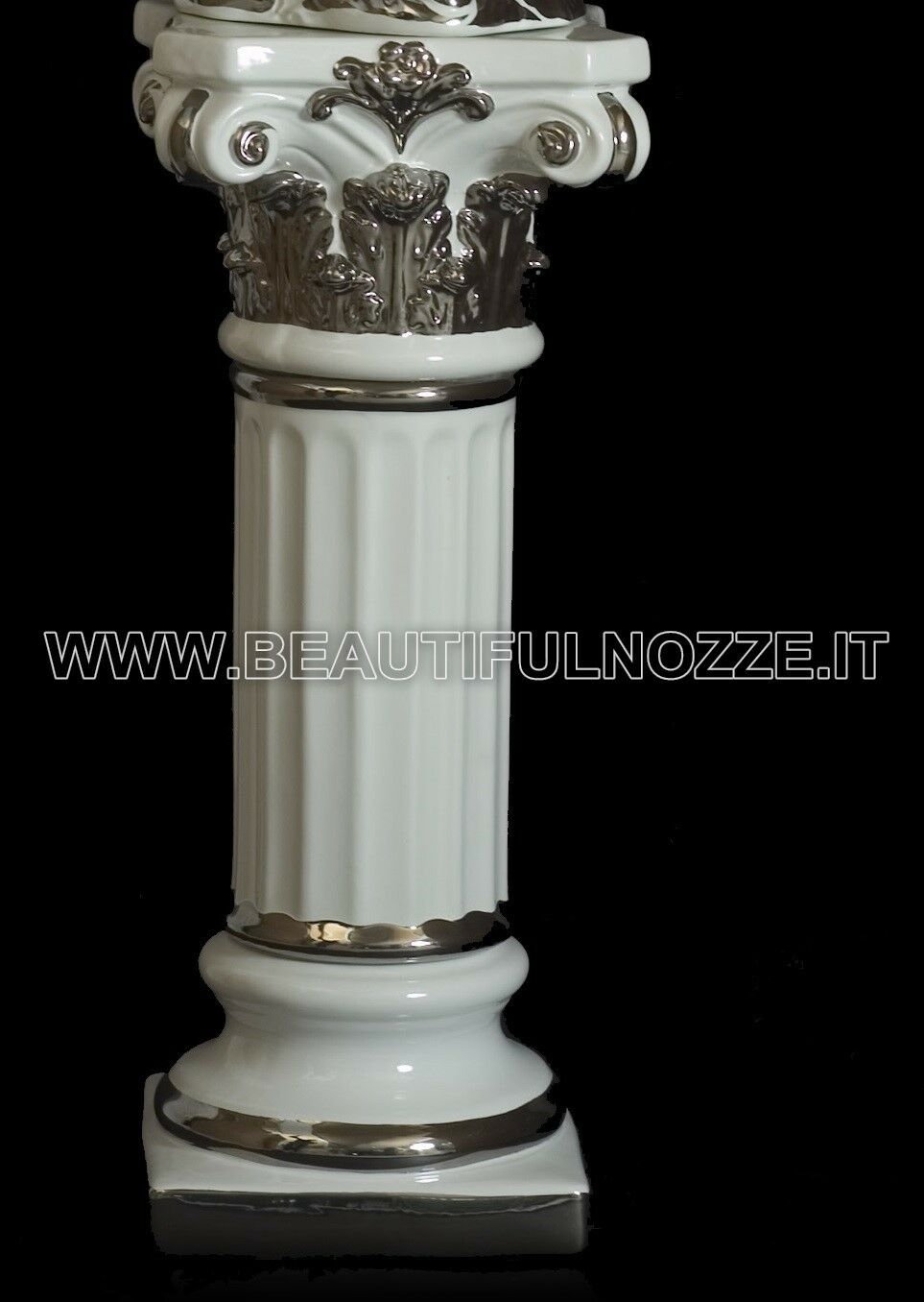 COLONNA IN CERAMICA BIANCO PLATINO CON DECORI ARREDO CASA