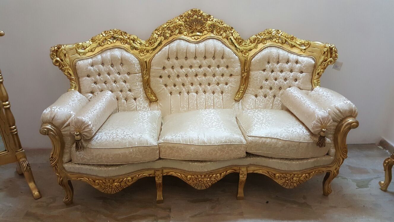 DIVANO 3 POSTI IN LEGNO FOGLIA ORO STOFFA E CRISTALLI CAMERA DA LETTO