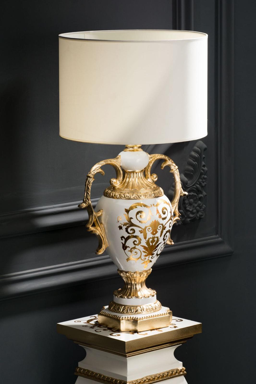 lampada in ceramica avorio con decori oro H 80 cm