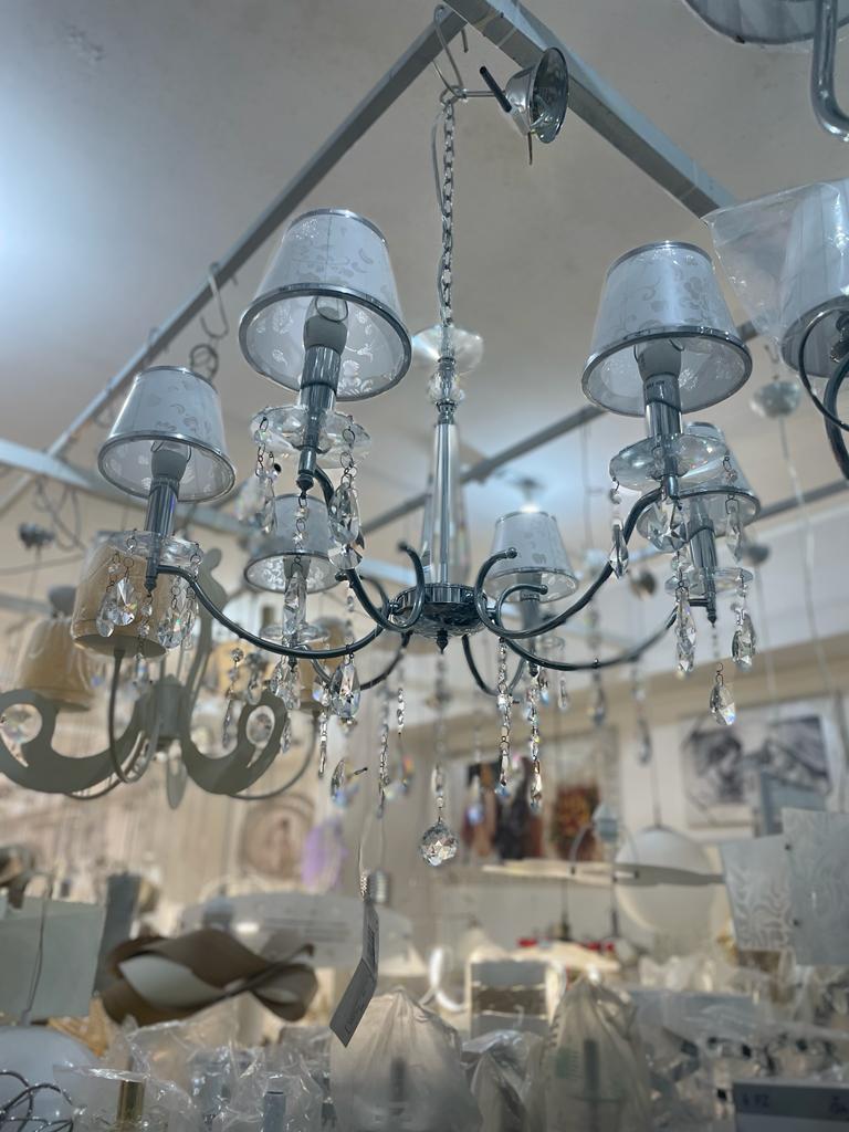 lampadario con struttura cromo e paralumi decoro floreale 6 luci diam 70 cm