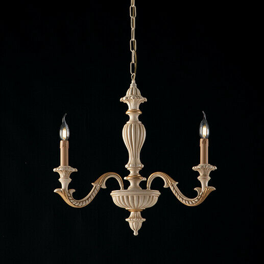 Lampadario in legno avorio e foglia oro 3 luci diam 43 cm