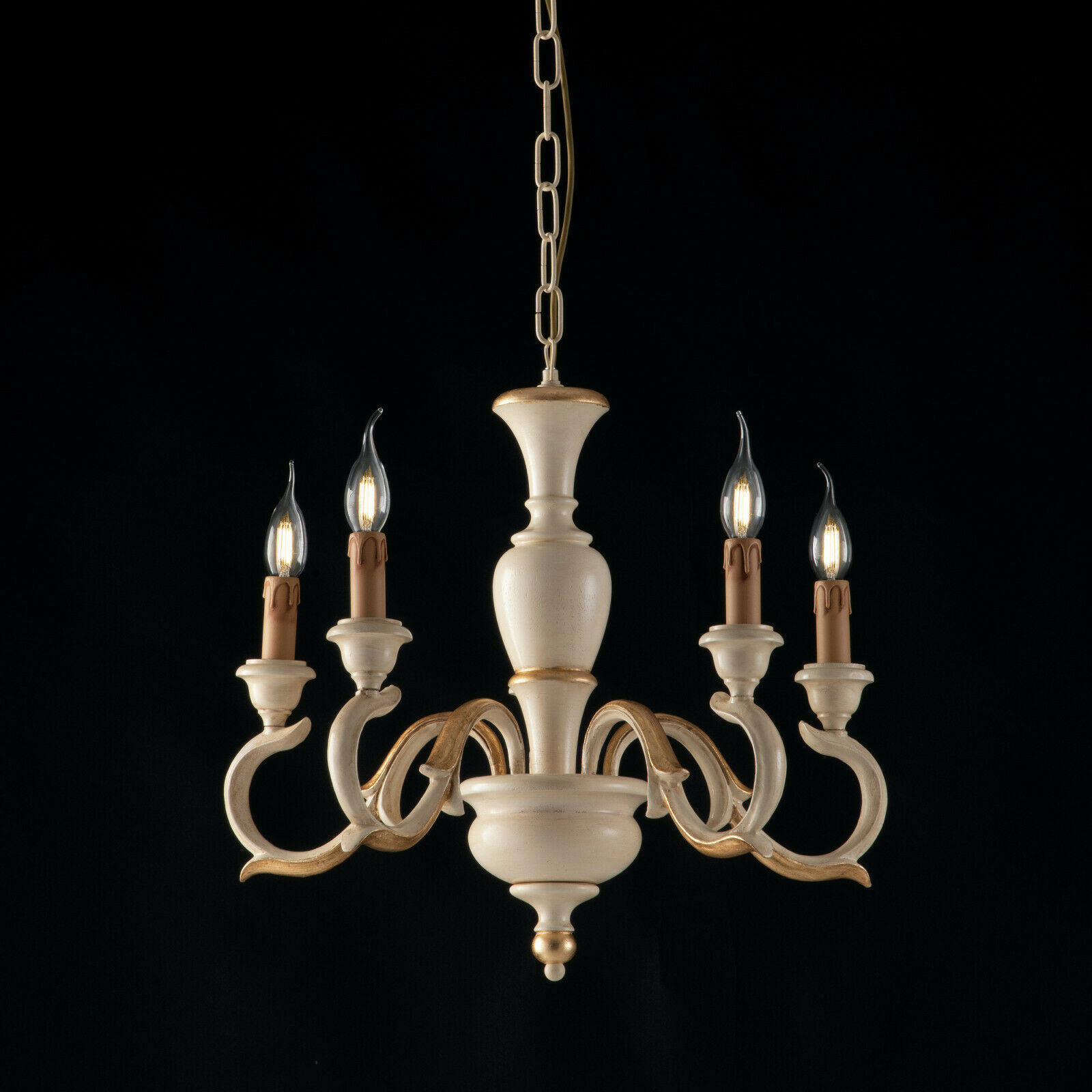 Lampadario in legno avorio e foglia oro 5 luci diam 50 cm