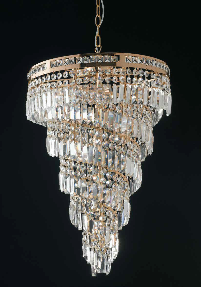 LAMPADARIO SOSPENSIONE IN FUSIONE BAGNO ORO CON CRISTALLI VARIE MISURE