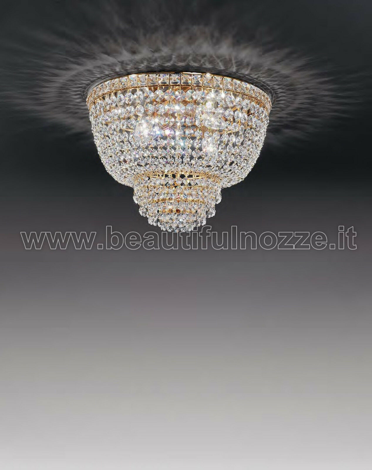 PLAFONIERA CON STRUTTURA ORO O CROMO E CRISTALLI TRASPARENTI