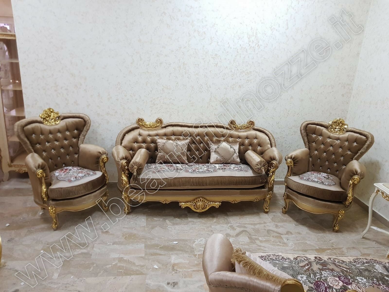 SALOTTO COMPLETO IN LEGNO FOGLIA ORO