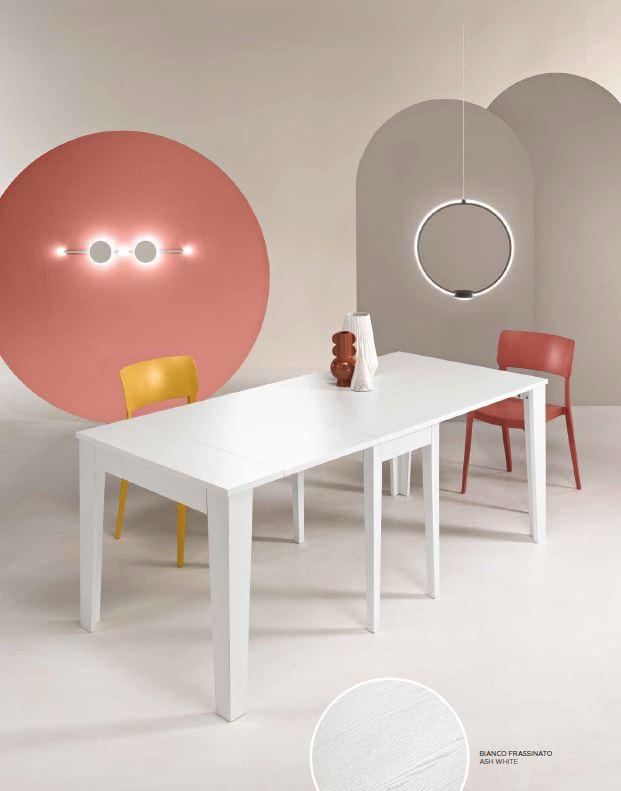 tavolo consolle moderno allungabile bianco fassinato chiuso L 90 cm allungabile fino a 3 metri