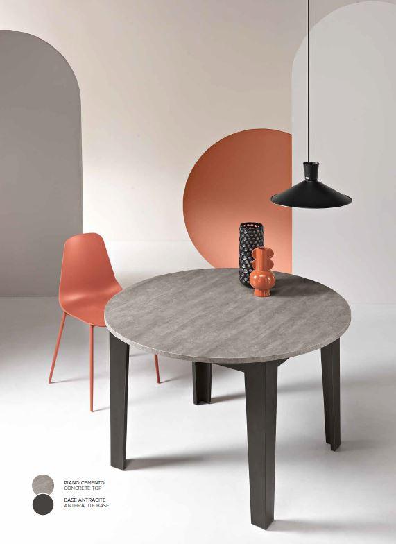 tavolo da pranzo moderno ovale allungabile base antracite e piano bianco effetto cemento chiuso diam 120 cm