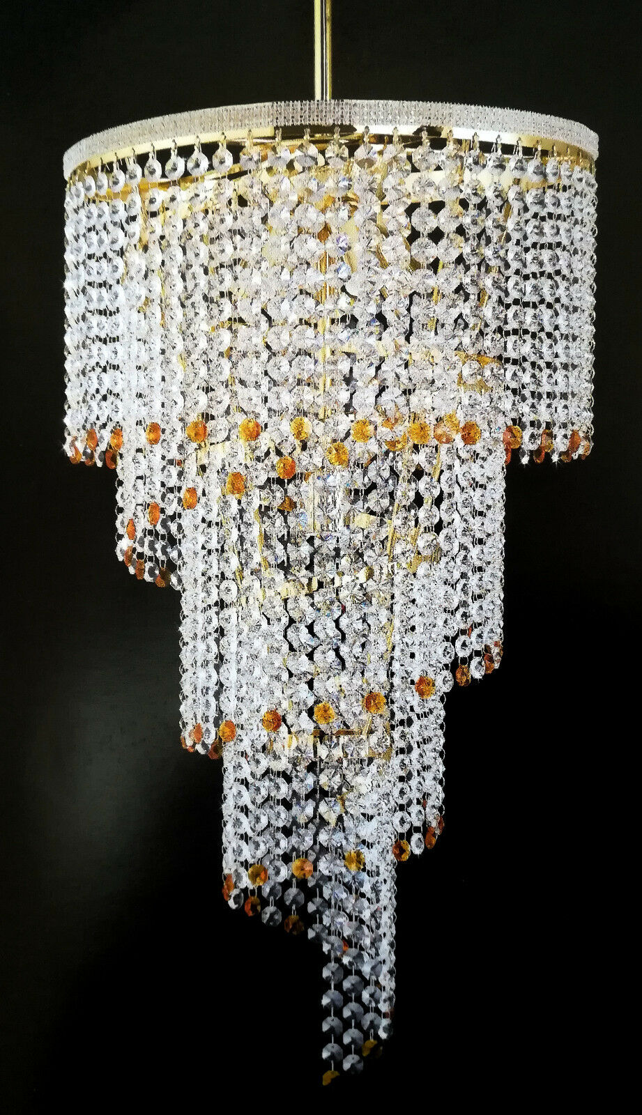 1200 LAMPADARIO SOSPENSIONE IN METALLO ORO O CROMO E VORTICE DI CRISTALLI 1 LUCE