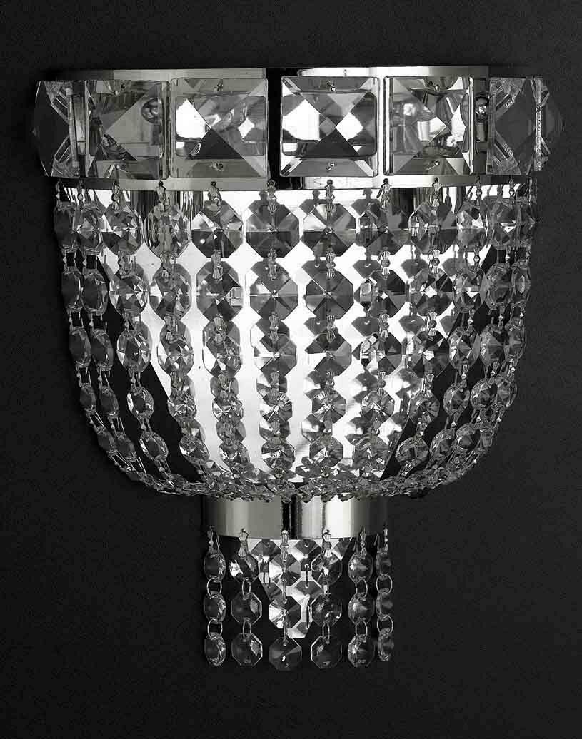 1218 APPLIQUE IN METALLO ORO O CROMO CON CRISTALLI 2 LUCI