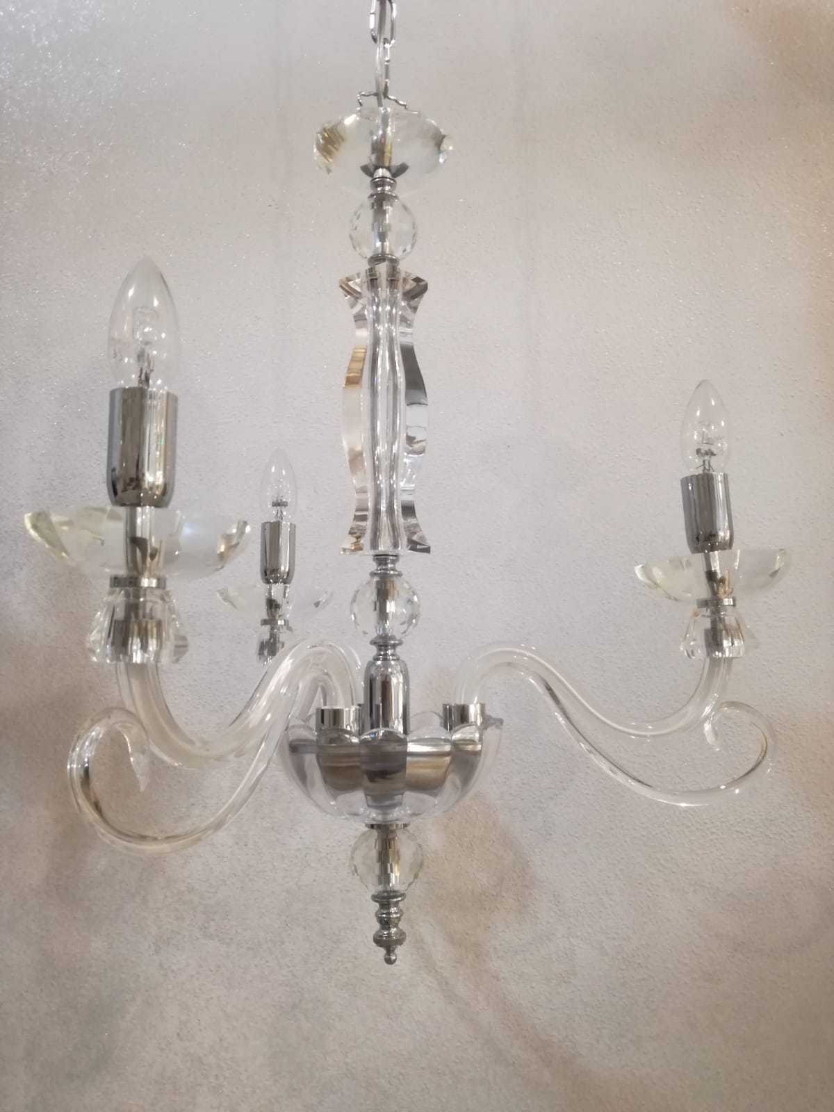 LAMPADARIO IN CRISTALLO CON FINITURE CROMO