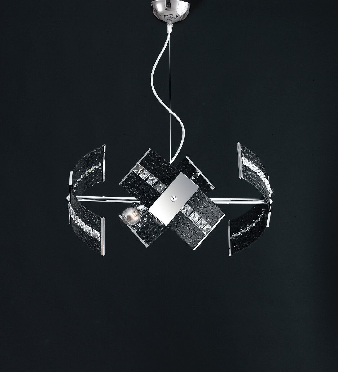ADDIE LAMPADARIO MODERNO STRUTTURA METALLO CROMO PELLE NERO CRISTALLI 4 LUCI