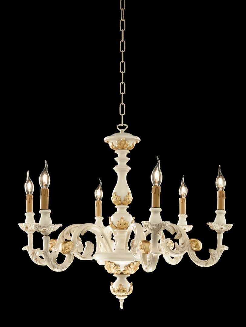 AGATA AVORIO/ORO LAMPADARIO IN LEGNO DECORO AVORIO E ORO 6 LUCI X 40W