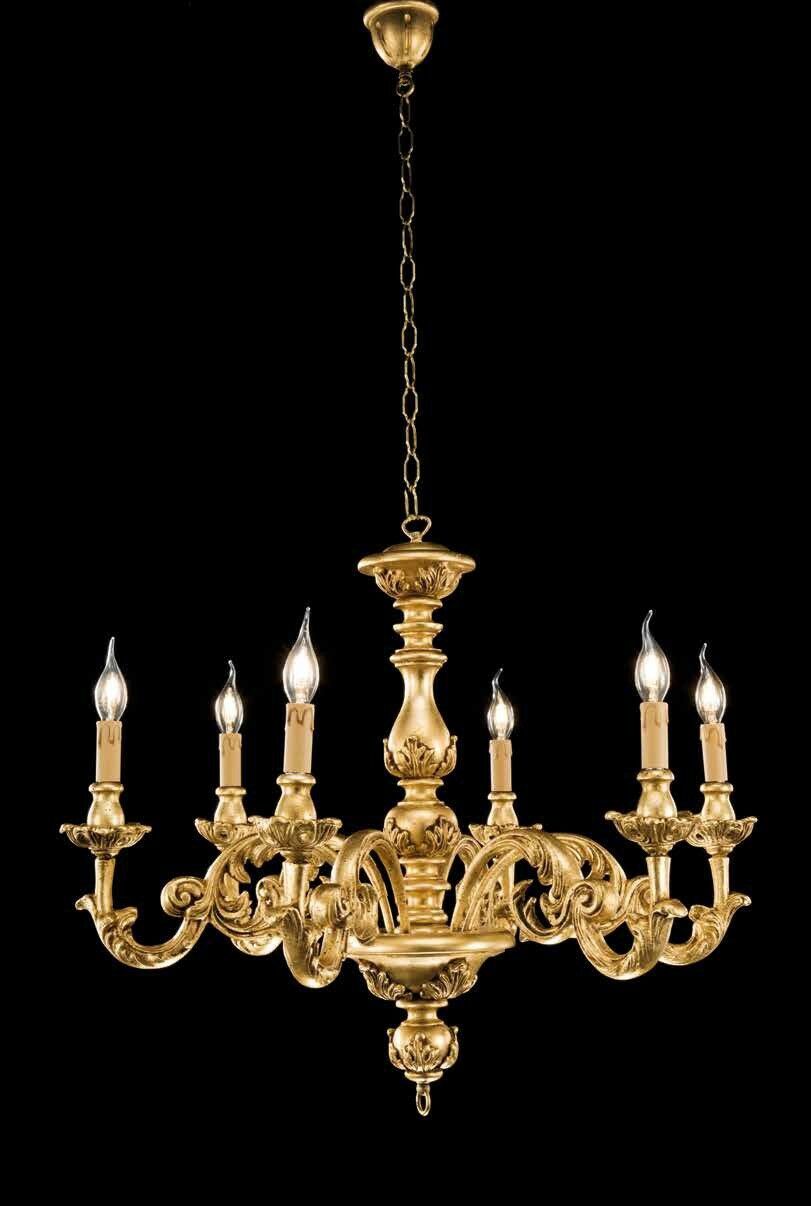 AGATA ORO MOSCA LAMPADARIO IN LEGNO DECORO ORO 6 LUCI X 40W