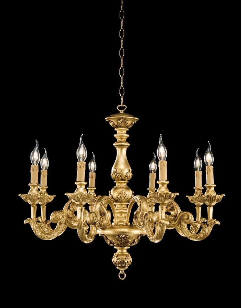 AGATA ORO MOSCA LAMPADARIO IN LEGNO DECORO ORO 8 LUCI X 40W