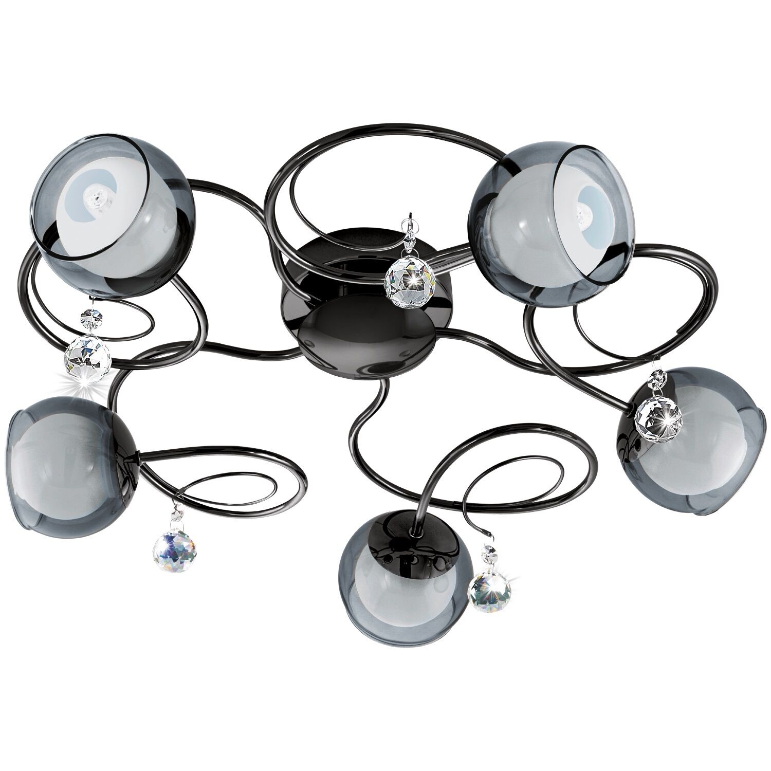 AIDA PLAFONIERA MODERNA ACCIAIO NICHEL NERO 5 LUCI LED VETRO E CRISTALLI