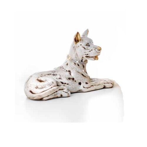ALANO SDRAIATO CANE IN CERAMICA DECORO BIANCO PARTICOLARI FOGLIA ORO E CRISTALLI