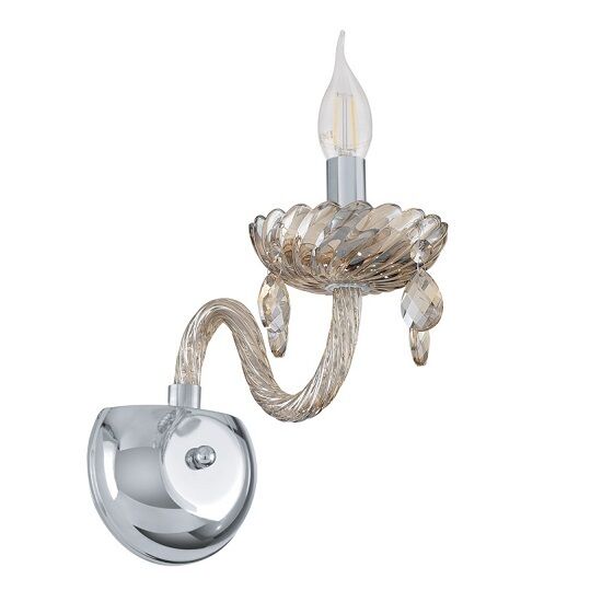ALEXINA APPLIQUE STRUTTURA ACCIAIO VETRO CRISTALLO CROMO COLORE COGNAC 1 LUCE