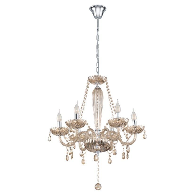 ALEXINA LAMPADARIO STRUTTURA ACCIAIO VETRO CRISTALLO CROMO COLORE COGNAC 6 LUCI