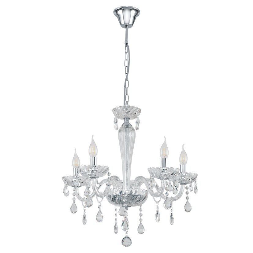 ALFREDA LAMPADARIO STRUTTURA ACCIAIO VETRO CRISTALLO CROMO COLORE CHIARO 5 LUCI