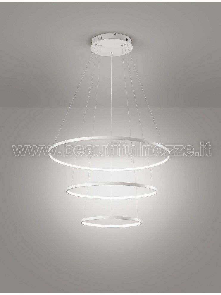 ALURING LAMPADARIO SOSPENSIONE TRIPLO ANELLO IN ALLUMINIO BIANCO SATINATO A LED