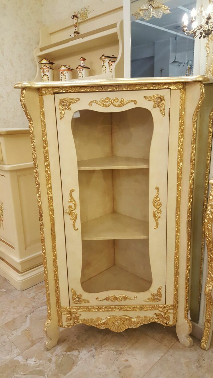 ANGOLIERA VETRINA MOBILE AVORIO E FOGLIA ORO CON CRISTALLI ARREDO CASA SALOTTO