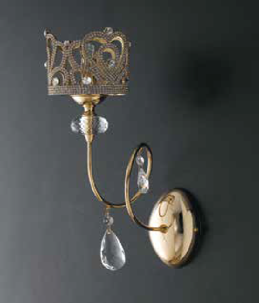 APPLIQUE 1 LUCE IN FUSIONE BAGNO ORO ORNATO CON CORONE DI SKAROVSKY E CRISTALLO