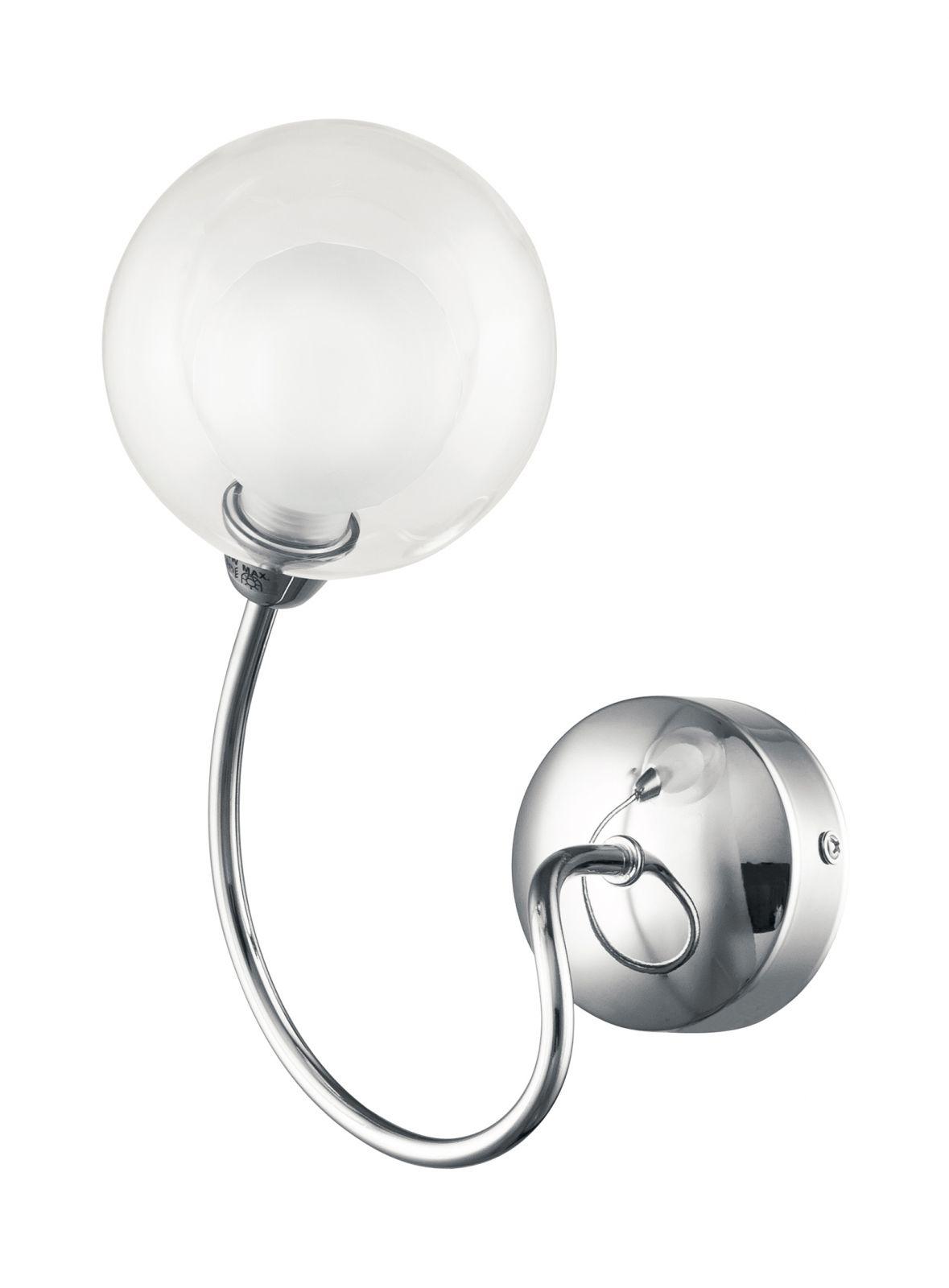 Collezione in metallo cromato dalle linee sinuose e armoniose con diffusore sferico con doppio vetro uno esterno trasparente e uno interno bianco opale