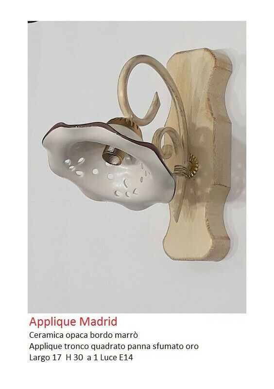 APPLIQUE IN LEGNO 1 LUCE STRUTTURA AVORIO IN CERAMICA E FERRO BATTUTO 17×30