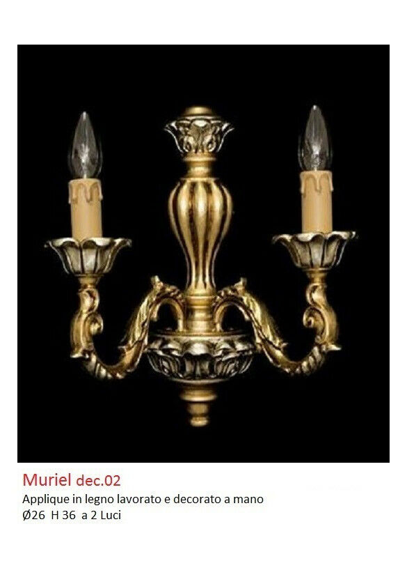APPLIQUE IN LEGNO 2 LUCI ORO