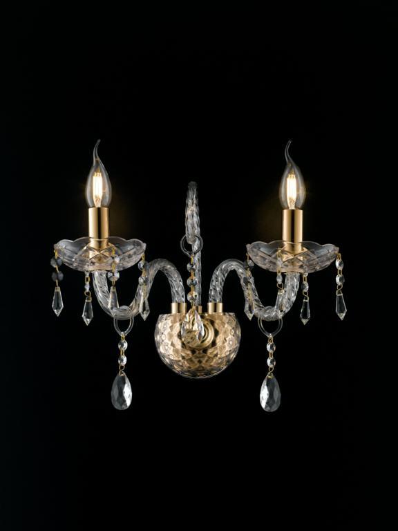 applique in vetro con cristalli pendenti e dettagli oro 2 luci mis 34×40 cm MONALISA