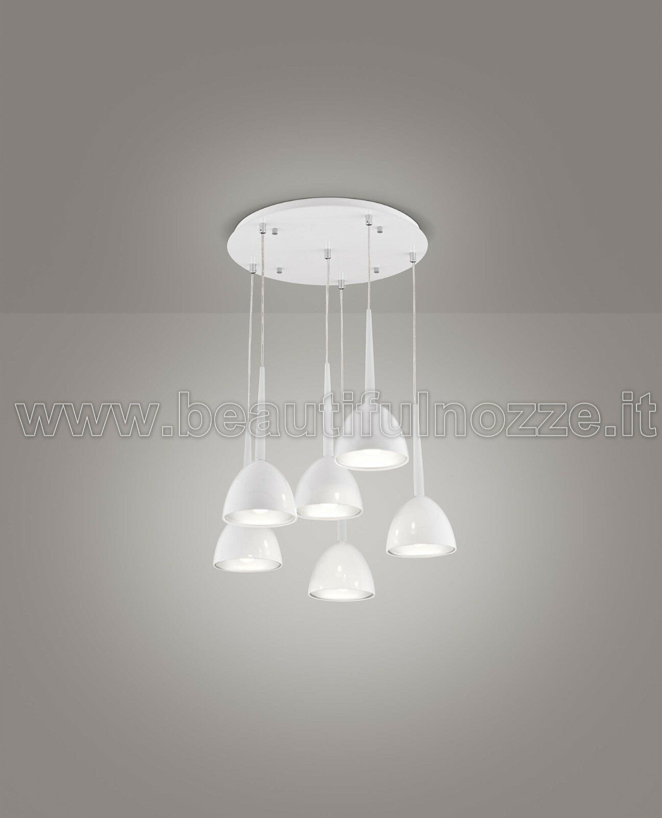BELL SOSPENSIONE MULTIPLE STRUTTURA IN ACCIAIO BIANCO FINITURA SATINATA 6 LUCI