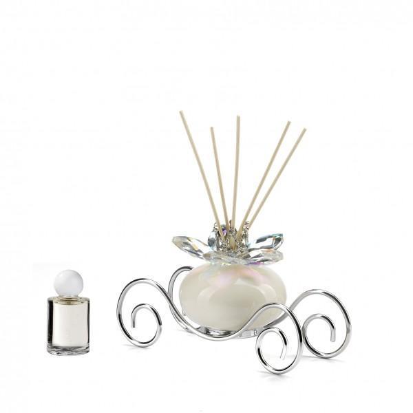 BOMBONIERA MATRIMONIO CARROZZA PROFUMATORE IN PORCELLANA BIANCA STECCHE E PROFUMINO INCLUSI