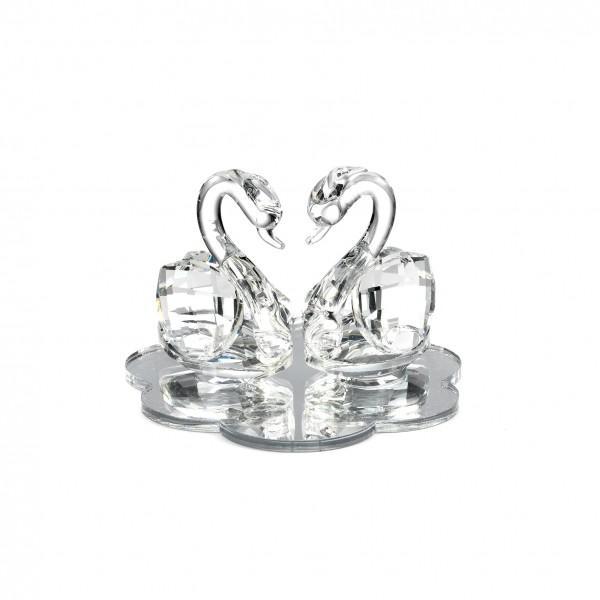 BOMBONIERA MATRIMONIO COPPIA CIGNI CRISTALLO CON BASE NUVOLA PLEX SPECCHIO