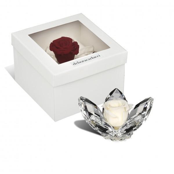 BOMBONIERA MATRIMONIO LOTO IN CRISTALLO CON ROSA BIANCA