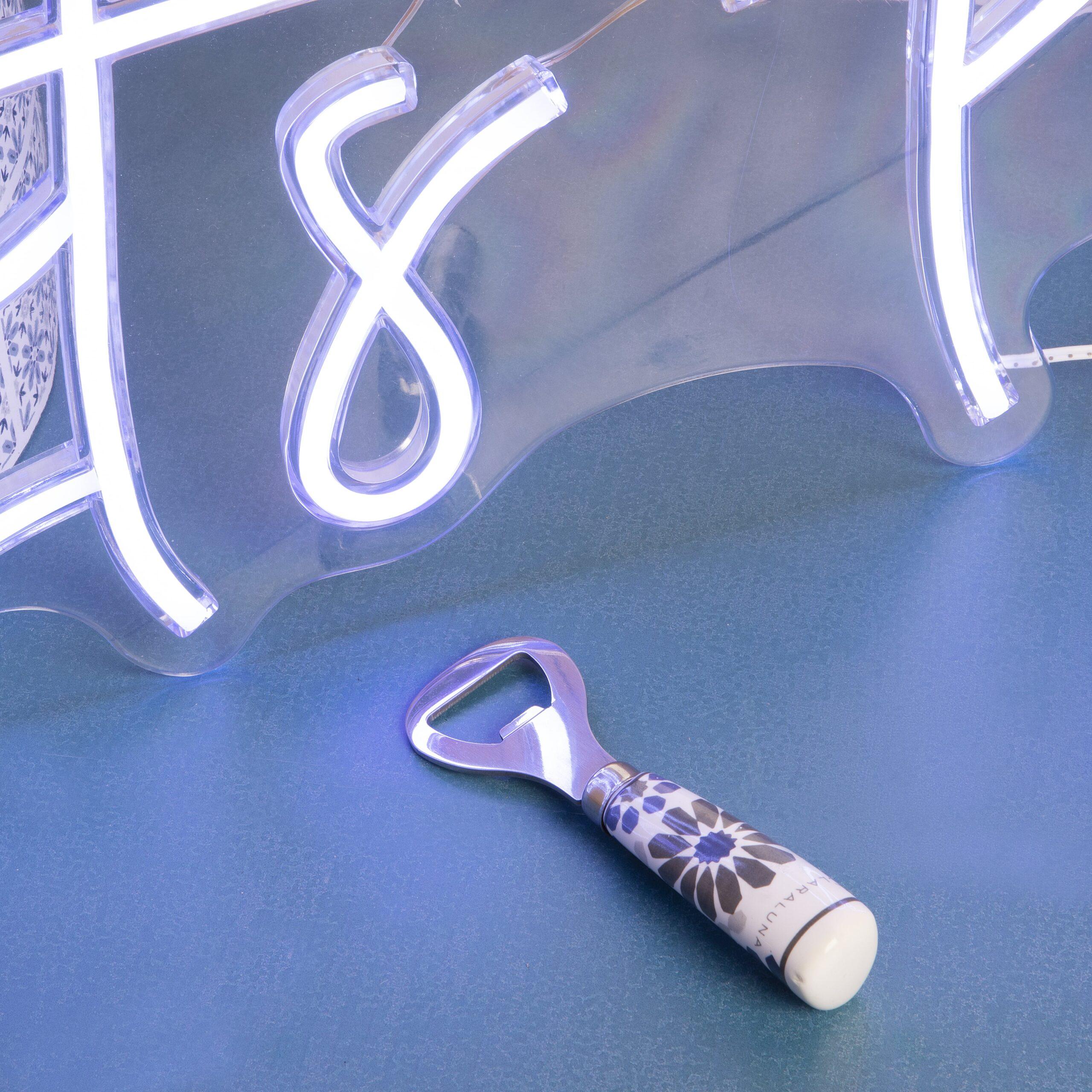 bomboniere matrimonio 2024 apribottiglie fiori blu e tortora 24045