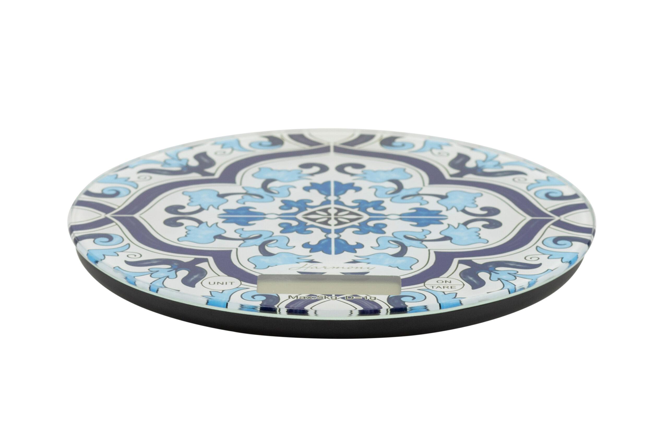 • BILANCIA TONDA IN VETRO CON MAIOLICA BLUE