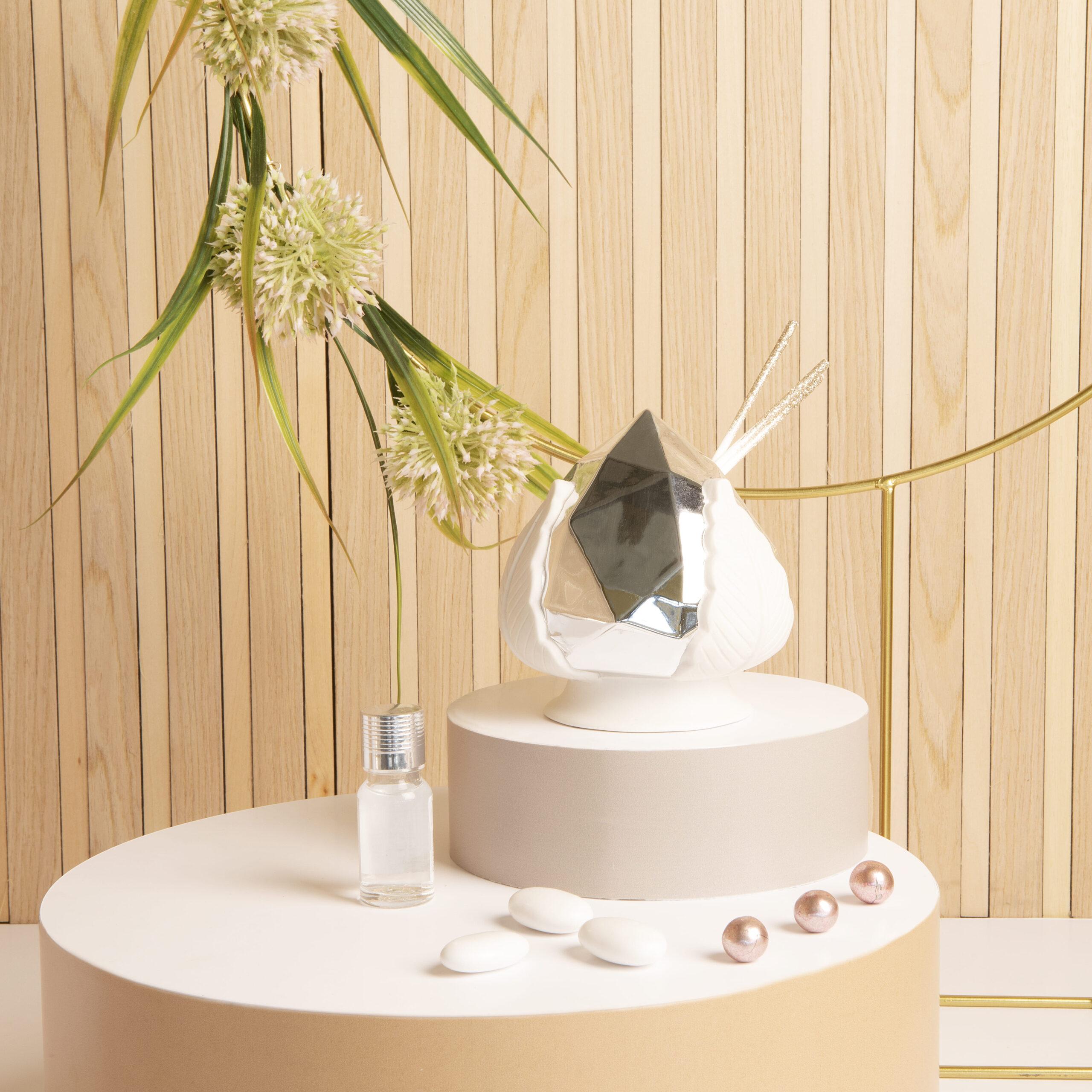 bomboniere matrimonio 2024 profumatore pumo piccolo bianco e silver 24192