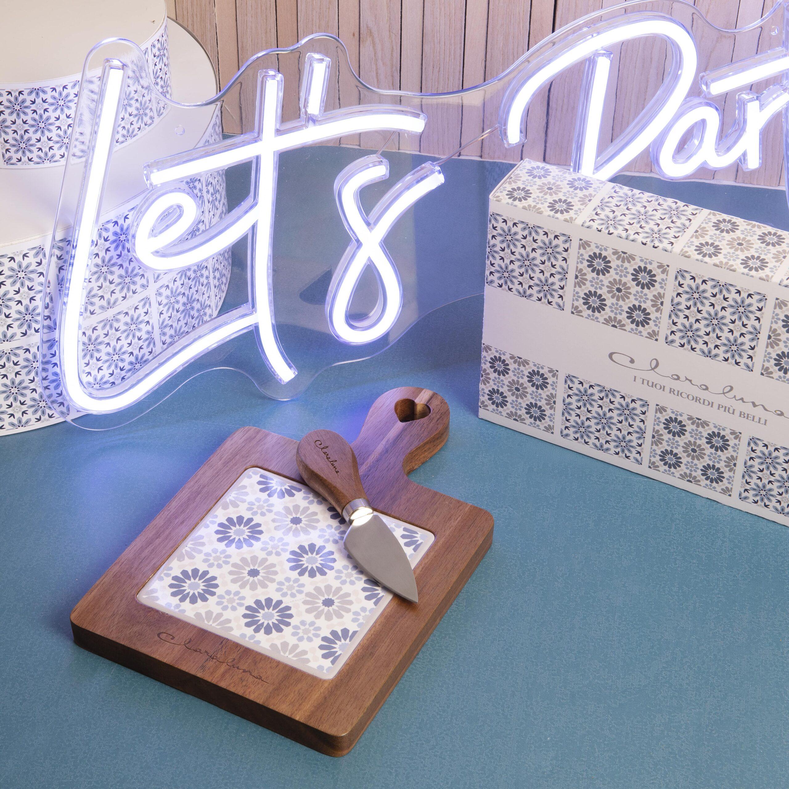bomboniere matrimonio 2024 tagliere acacia fiori blu e tortora + coltellino 24033