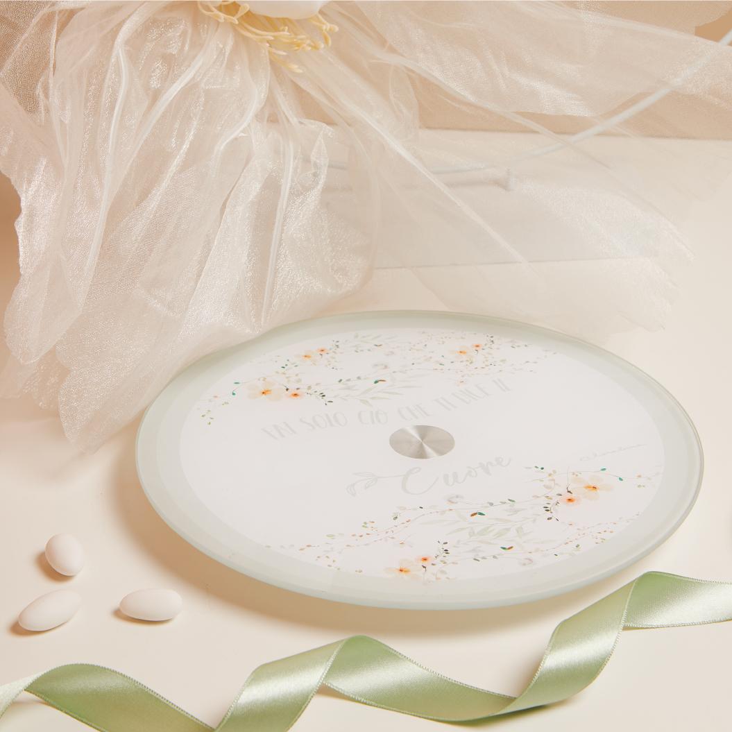 BOMBONIERE MATRIMONIO 2025 VASSOIO GIREVOLE DECORO FLOREALE VERDE 25032V
