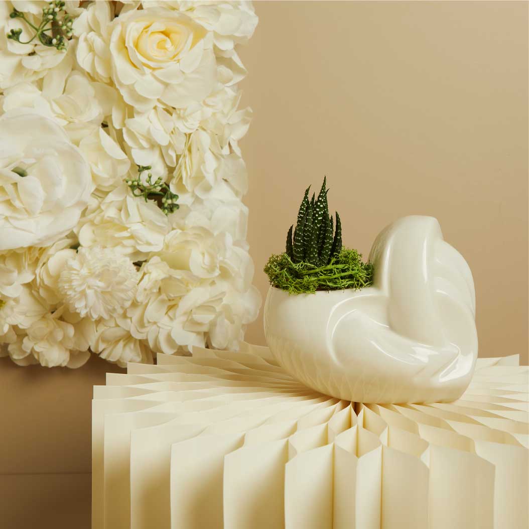 BOMBONIERE MATRIMONIO 2026 VASO BIANCO CON PIANTINA E MUSCHIO 26136