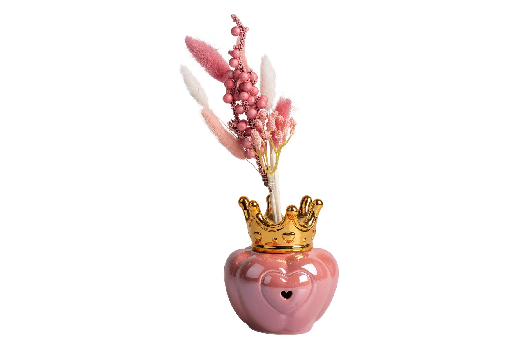 BOMBONIERE MATRIMONIO PROFUMATORE CORONA ROSA PERLATA PORCELLANA CON LED E CORONA ORO PRMT25109