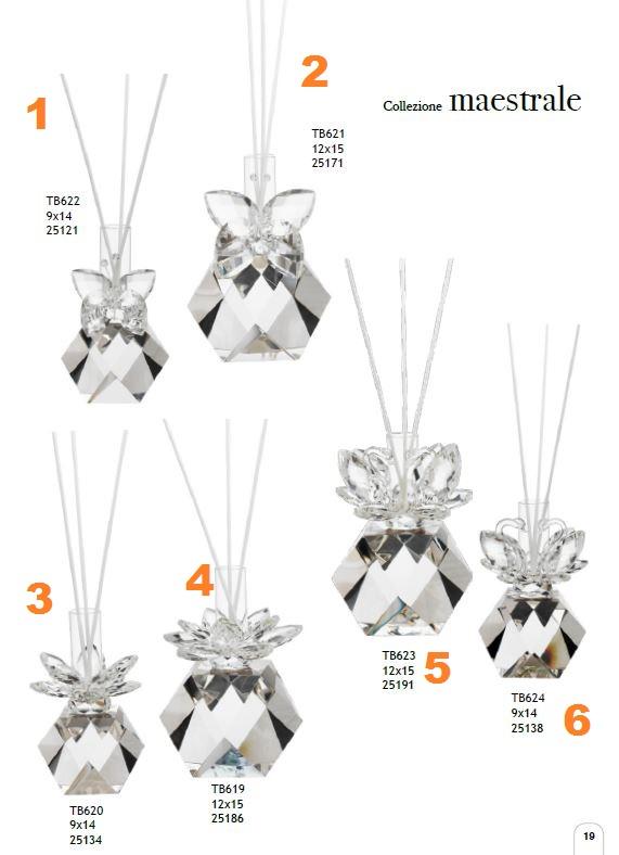 bomboniere matrimonio profumatore in cristallo con cigni, fiore o farfalla