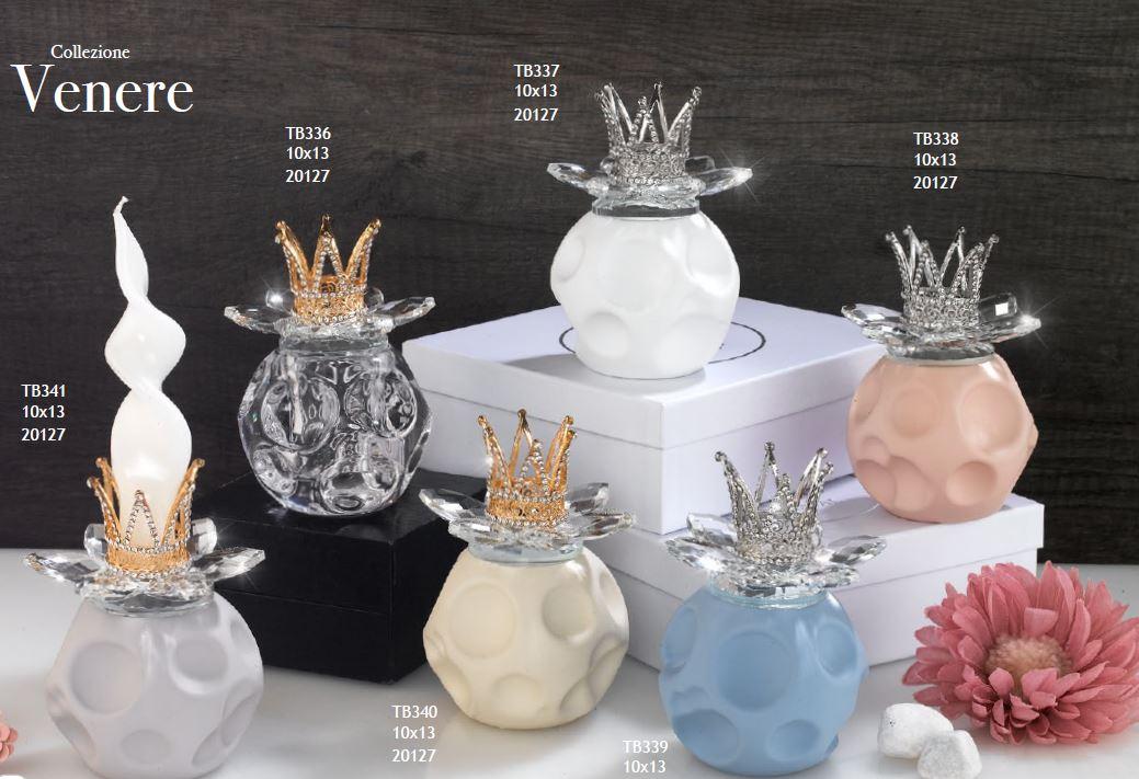 BOMBONIERE MATRIMONIO TUFANO 2023 PORTA CANDELA CON SFERA COLORATA E CORONCINA