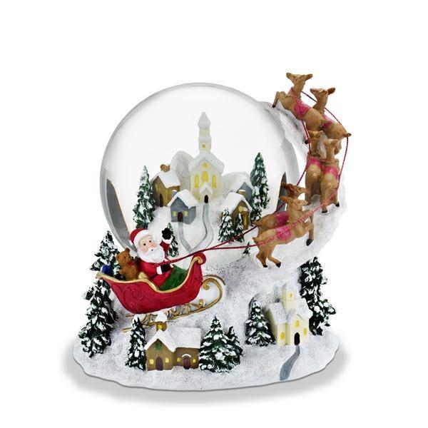 BOULE DE NEIGE CON LUCI LED E MUSICA BABBO E SLITTA CM. Ø16,3 H17
