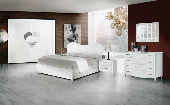 camera completa bianca frassinato con serigrafia argento con letto contenitore