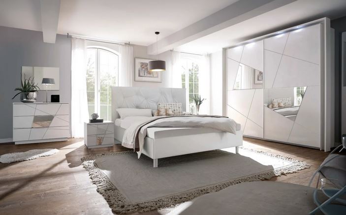camera completa bianco frassino con specchi e armadio con faetti con letto contenitore