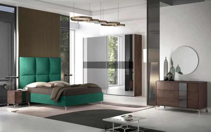 camera completa effetto pelle bronzo con specchi letto contenitore