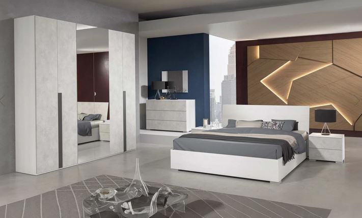 camera da letto completa frassino bianco e cemento